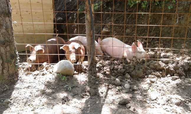 In azienda vengono allevati ogni anno allo stato brado, alcuni maiali. Li vedrete scorrazzare nel loro recinto situato all’ingresso dell’azienda. Vengono nutriti con scarti dell’orto e della lavorazione del formaggio, senza utilizzare mangimi!
